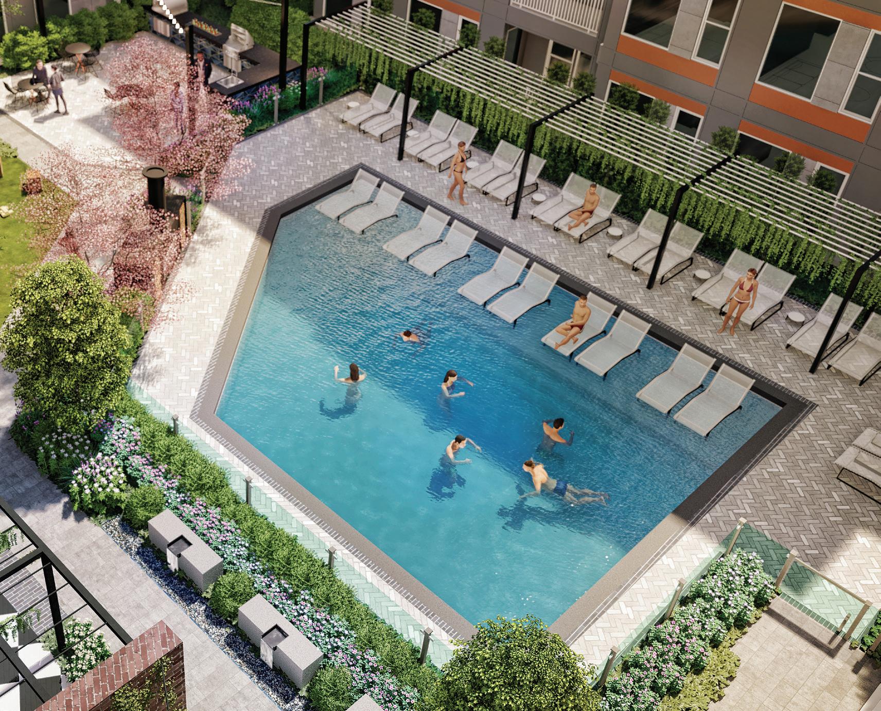 Our community feels more like a social club — an unpretentious scene that invokes polish, quirk and originality. Close to the action yet slightly tucked away, our community amenities are designed to meet the elevated, more refined comforts our residents desire. Lush landscaping creates private respite and our Upper Deck boasts 360-degree views. Our hidden cocktail club pays homage to the historical speakeasies, and the pool courtyard plus garden lounge thoughtfully invites our residents to relax, recline and make it home.