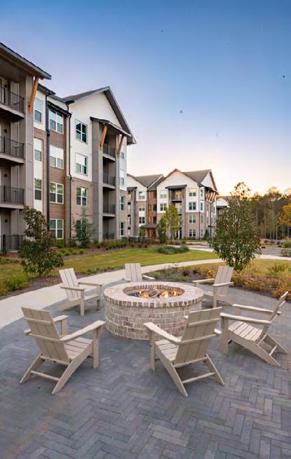 Outdoor common areas include a resort-style pool & sundecks, a game lawn with firepits, outdoor kitchen spaces, & a dog park with wash stations. These amenities give residents & their pets easy access to nature, fresh air, & daylight to reduce stress & enhance mental health.