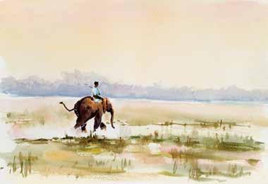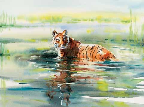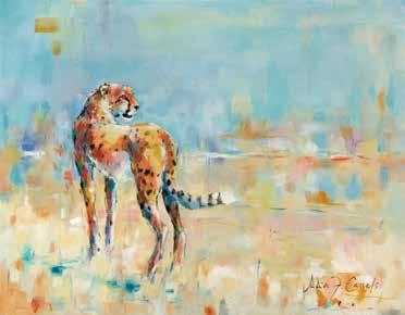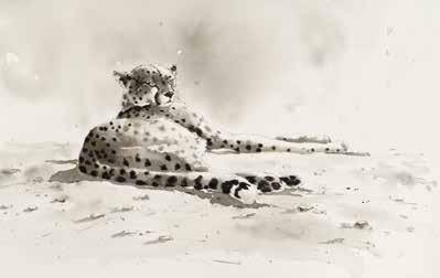20 21 Lilac-Breasted Roller Watercolour 38 × 32 cm £895 Carmines Flying High Watercolour 33 × 48 cm £895 Elephants at Sundown Watercolour 49 × 70 cm £2,500 Leopard Oil on canvas 57 × 50 cm £3,250