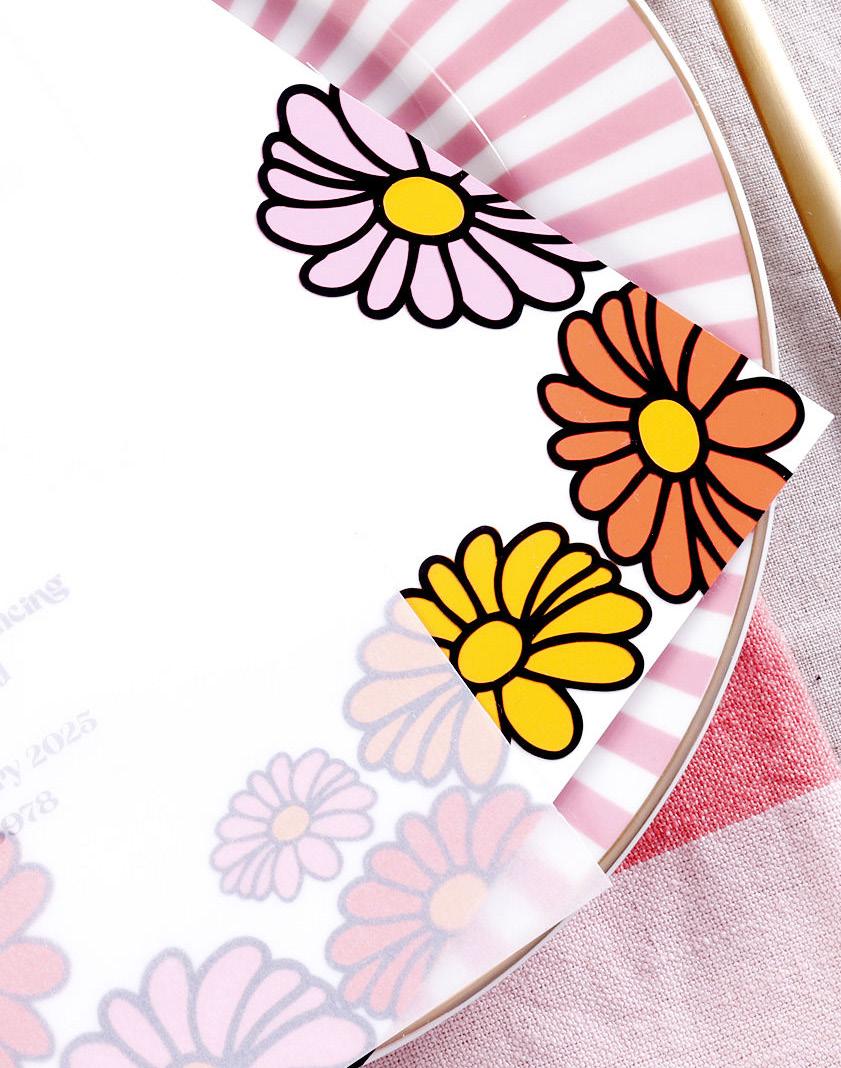 TIP: to enhance the invitation, create a matching envelope using the same vinyl floral designs to decorate the front of the envelope, or the flap at the back for a custom and personalized touch.
