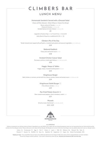 Dishes are prepared in our kitchens where all types of ingredients are used. Whilst care is taken, the use of shared equipment means we can’t guarantee that your food and drink will be entirely free from allergen contact. Please notify your server about all food allergies. All allergens are correct at the time of printing, to see any updates please ask to see our allergen matrix.