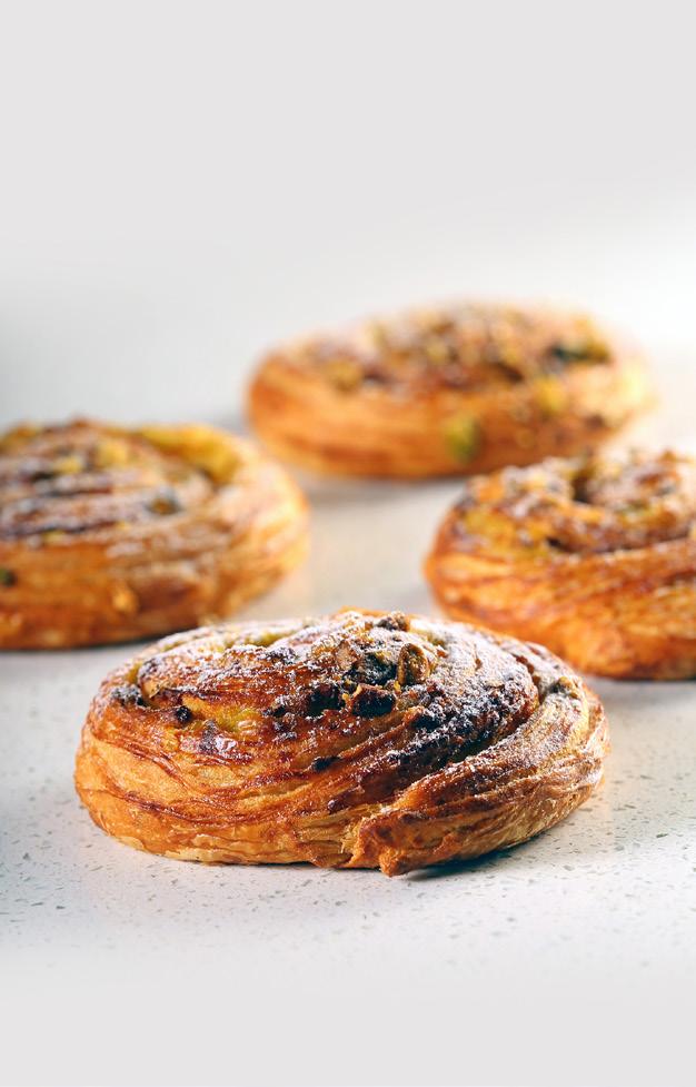 Experience the perfect balance of flaky pastry and rich pistachio flavor in this month's must-try Viennoiserie, the Pistachio Snail.