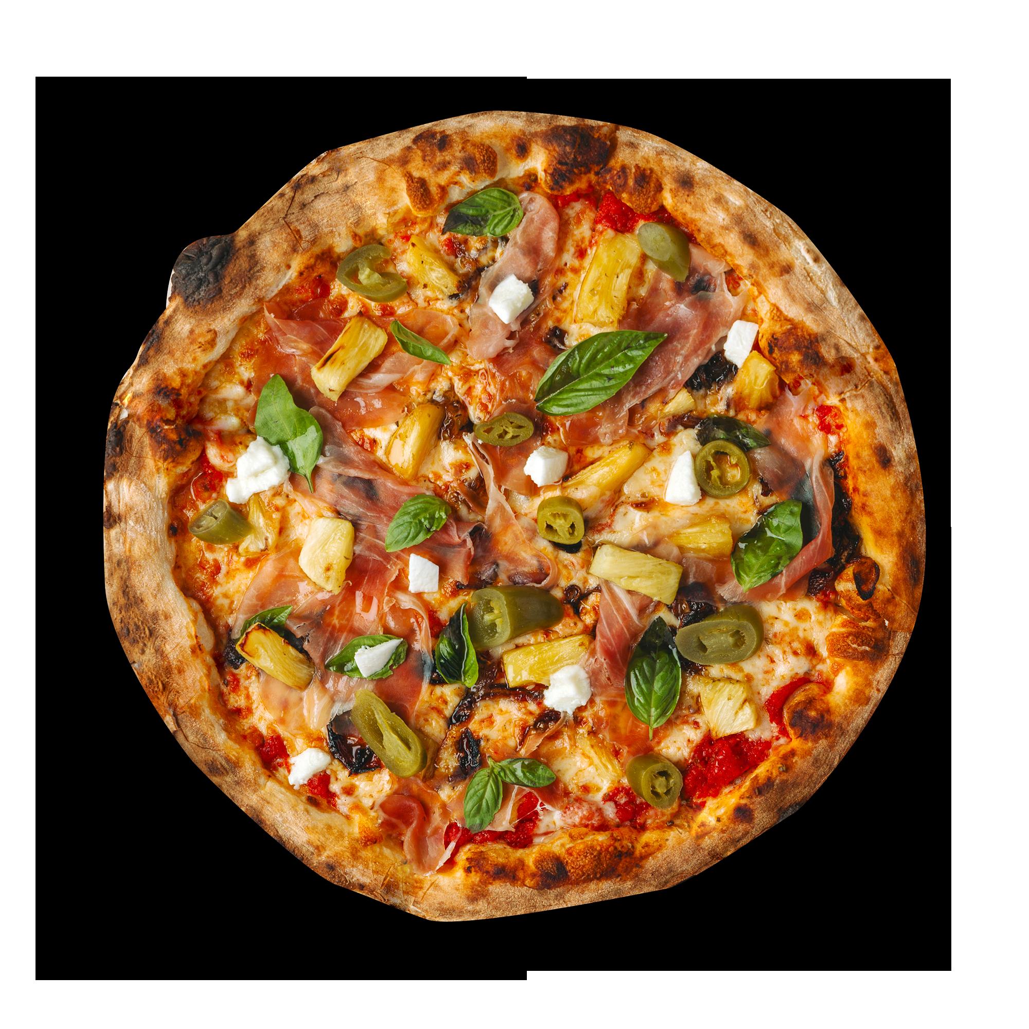 MOZZARELLA | PINEAPPLE | ONIONS | PROSCIUTTO | JALAPEÑO BASIL | BALSAMIC VINEGAR