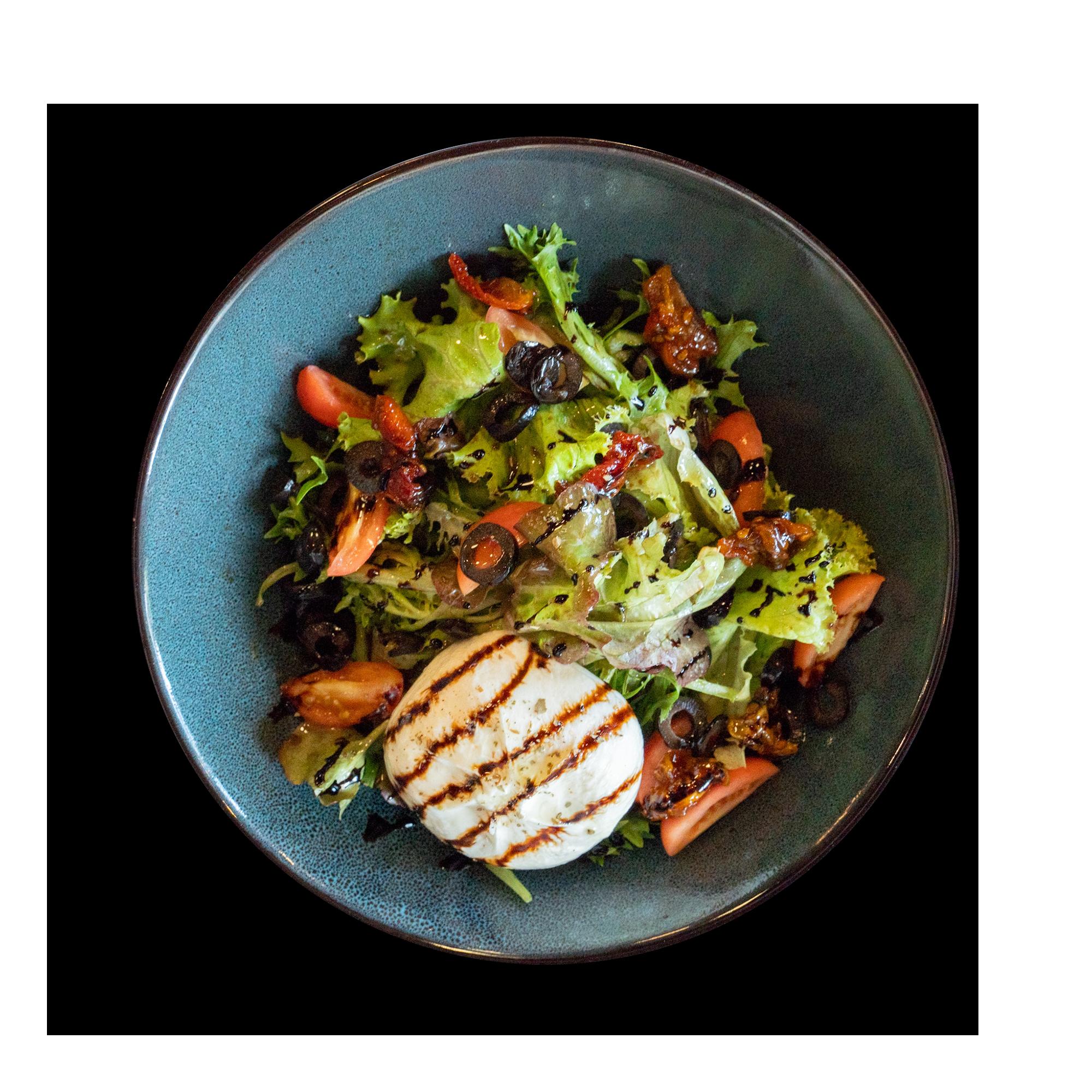 CHERRY TOMATOES | BURRATA CHEESE | MESCLUN LEAVES | BALSAMIC OLIVE OIL | SUNDRIED TOMATOES