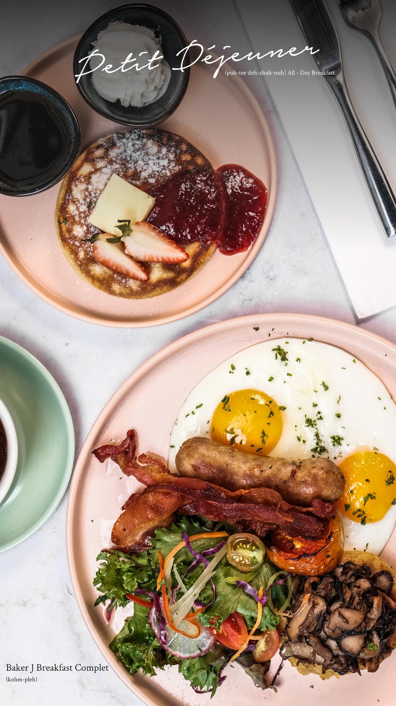 Rustic breads / Croissant / Danish / Butter / Jam / Cereal /