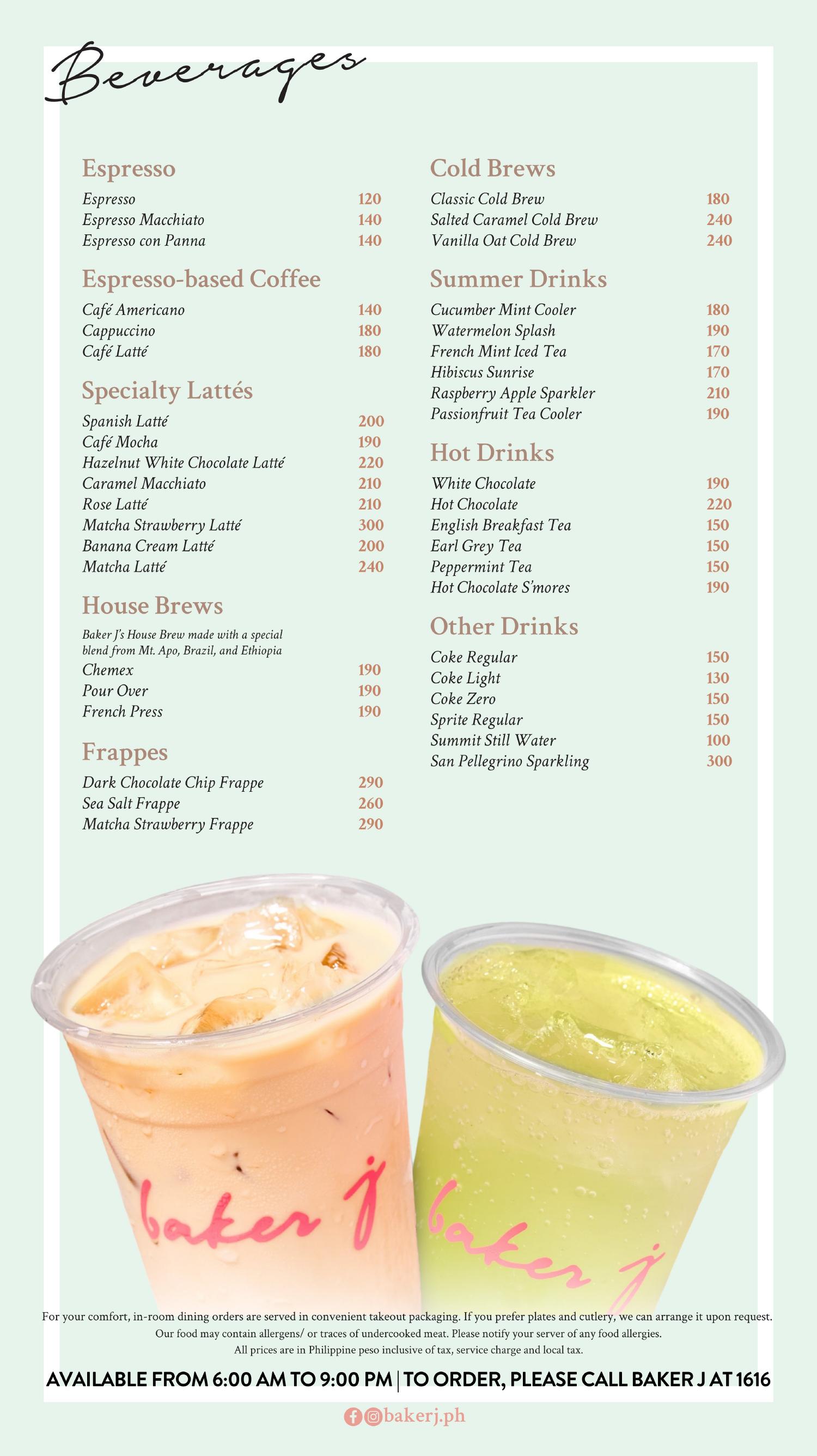 SEEK ASSISTANCE FOR ANY FOOD ALLERGY OR SPECIAL DIETARY REQUIREMENTS PRICES ARE QUOTED IN PHILIPPINE PESO, INCLUSIVE OF VAT, LOCAL TAX & SERVICE CHARGE. TO ORDER, PLEASE CALL IRD AT 1604