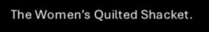 The Women’s Quilted Shacket. Designed with a modern, lightweight feel, this quilted nylon piece offers just the right amount of warmth without the bulk, making it perfect for any adventure. Not too oversized and not too fitted, it’s versatile enough to wear during daytime errands to date night drinks.