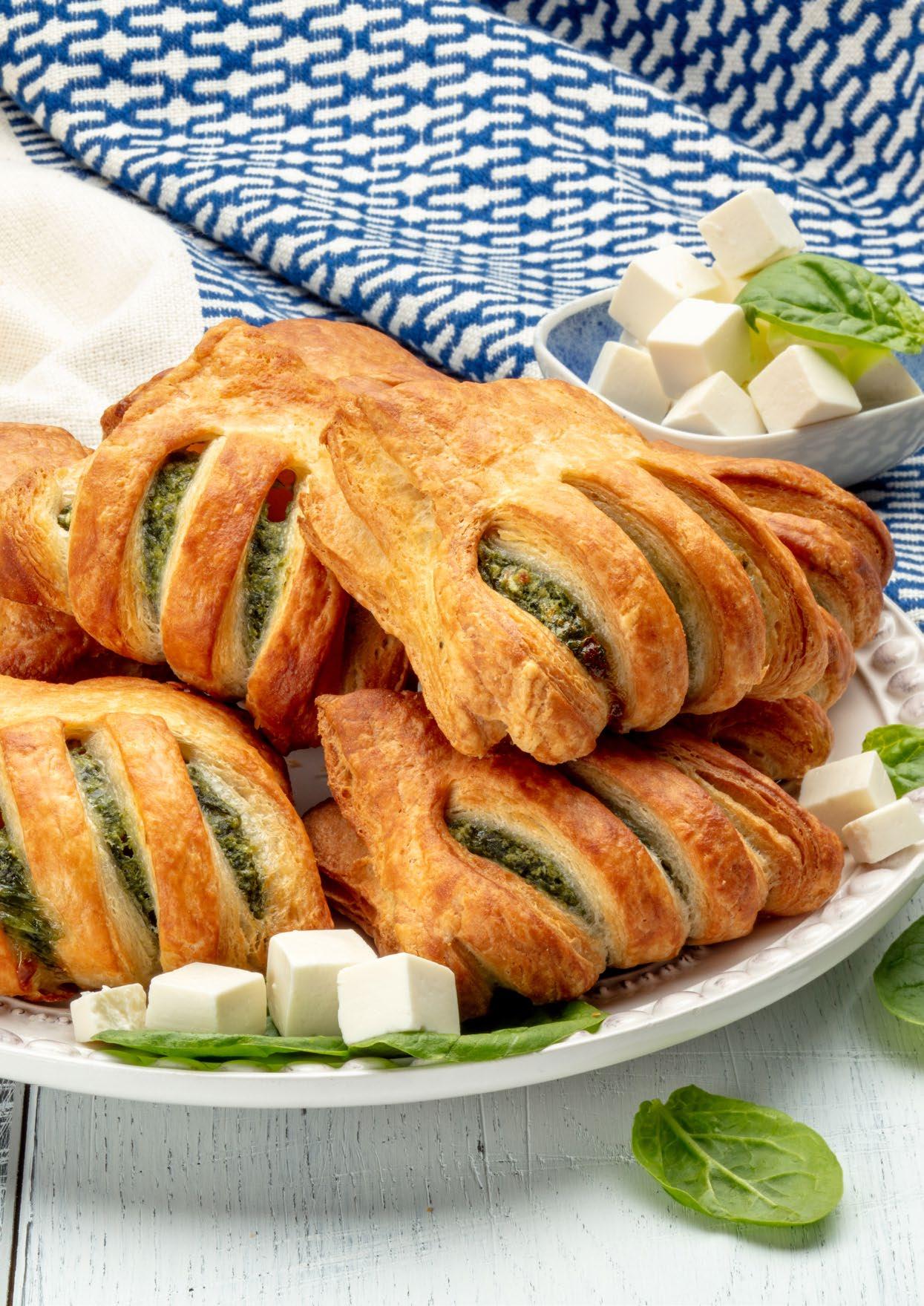 Danish puff pastries with a creamy spinach and cheese filling.