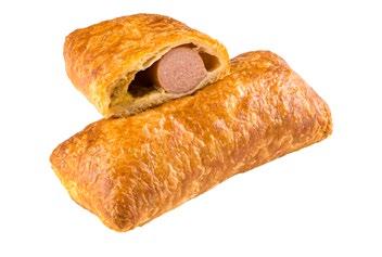 Danish puff pastry rolls with sausage.