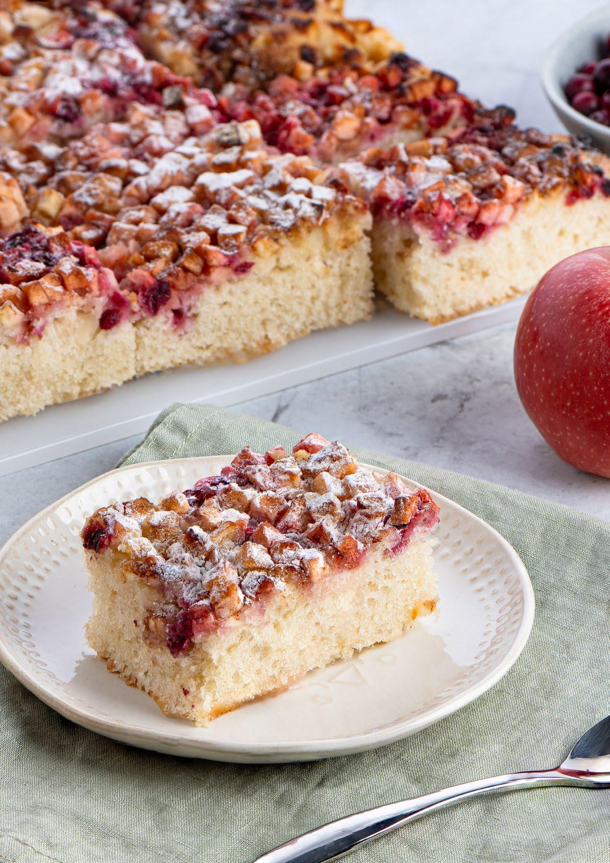 Classic homestyle cake, rich with sweet apples, tart lingonberries and a hint of cinnamon.