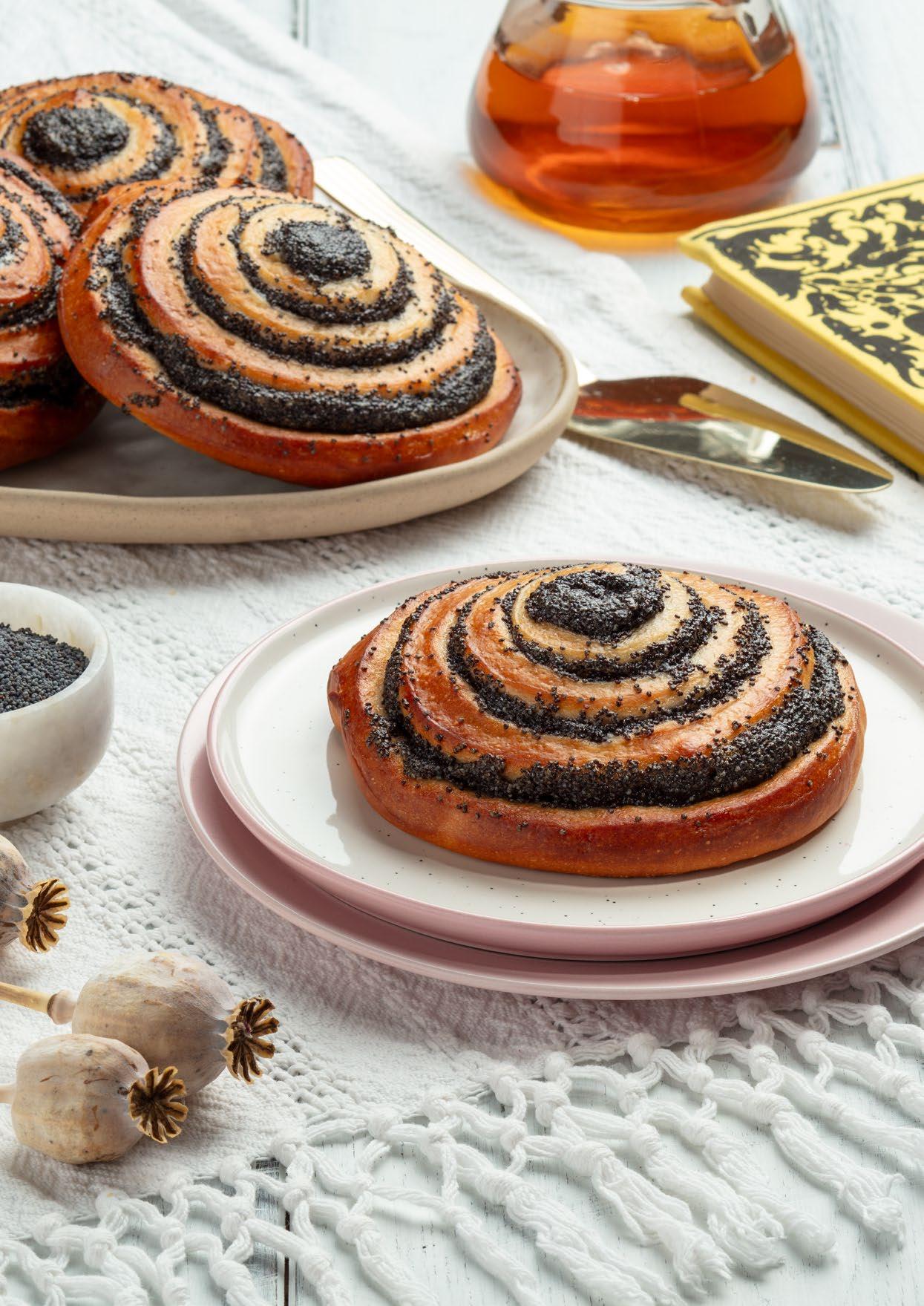 Danish butter dough pastry rolls with poppy seed-marzipan filling.