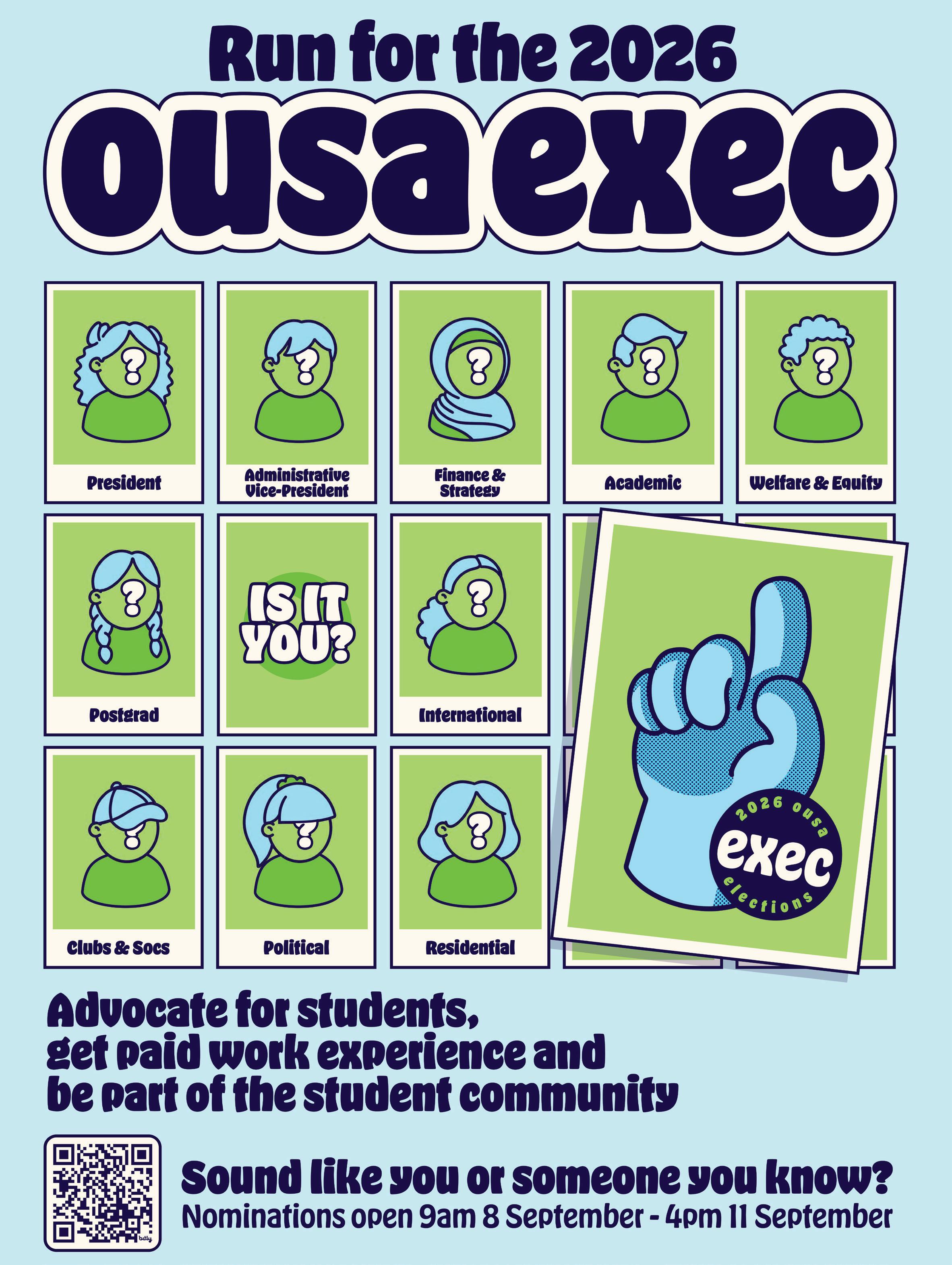 So come along. Sit in the back and heckle if that’s your vibe, or front row with a burning question if you’re feeling bold. Either way, show up. Because when students turn out, we remind the city that we’re not just passing through –we’re shaping Ōtepoti’s future. And that future starts with you, your vote, and maybe even your one-liner at a candidate forum.