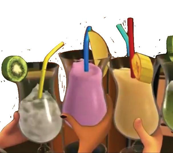 Creamy coconut swirls, layered orange-pink fruit blend, over ice for a pure sunset gradient – like the island breeze in a glass.