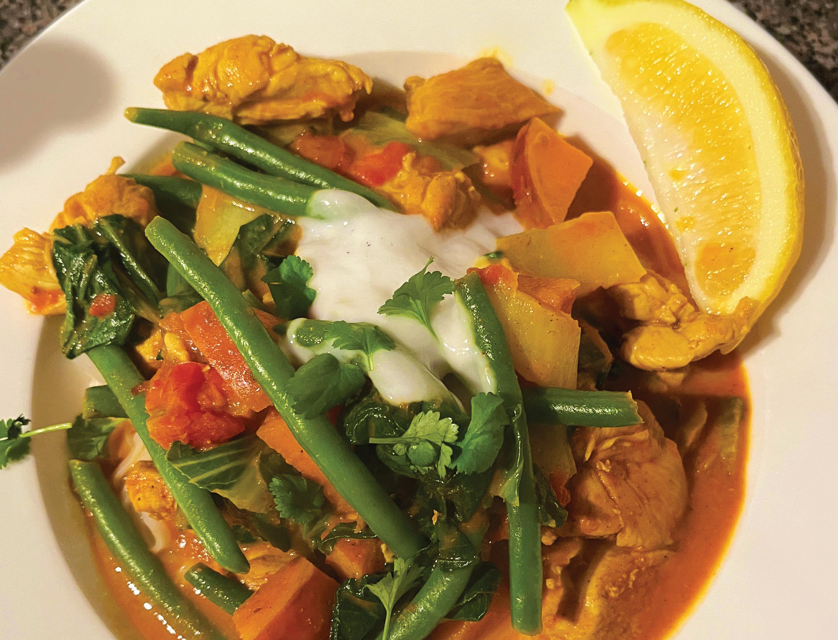 Boil your beans, add into the curry and bring off the heat. Serve on top of the noodles. Can garnish with yoghurt and/or coriander.