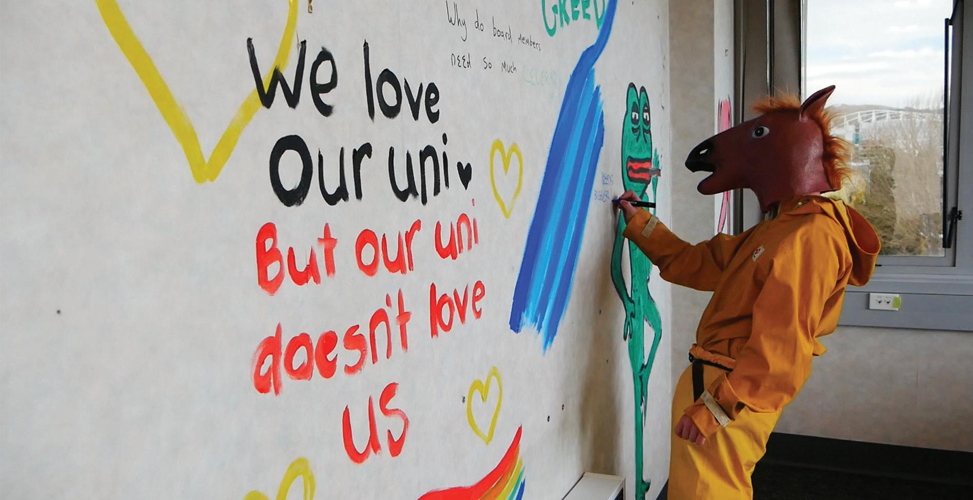 Three people, including one student, were arrested for intentional damage on Tuesday August 1. The arrests came after a group of mostly students “repurposed” a disused office block on the second floor of the Business School by painting the walls to protest staff cuts and “University mismanagement” of the $60m deficit. This charge - upgraded from the original wilful damage - carries a maximum sentence of seven years in prison.