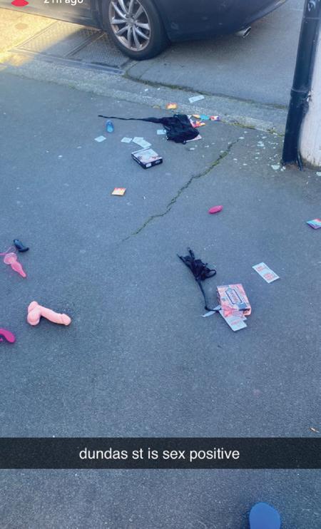 I’d also use to describe genocide.” When Sammy arrived at 9am the following morning to catch the staff's reaction, she found the building locked – with cleaning crews covering up the art.