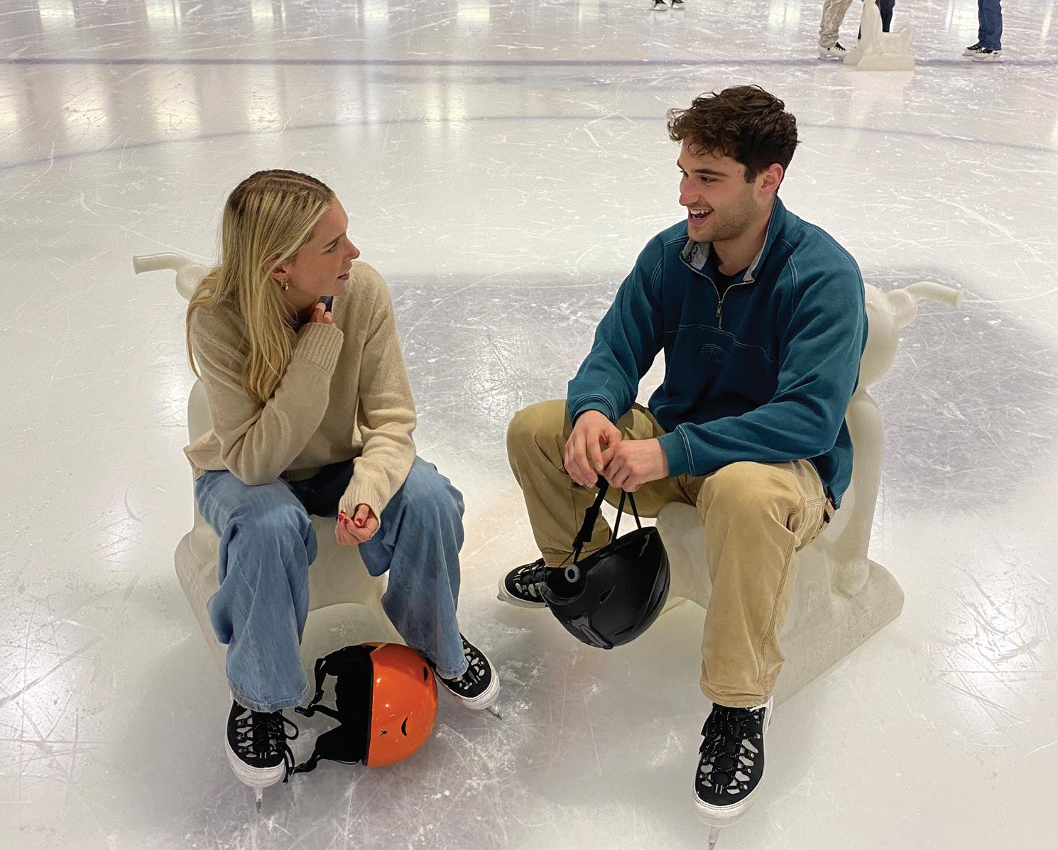 Finally, Brad is pulled aside. They talk about his recent labwork, with Brad commenting that he feels as if he is giving Joel a “research pitch”. Joel expresses his appreciation for Brad’s outfit, approving of his more “appropriately warm clothes”. They don’t talk for long before Joel comments that he wishes to get back out on the ice, dragging Brad with him. “It’s been lovely,” they say as they ditch me, Lil Jon, Sonya and Pickles to be alone with my laptop in the middle of an ice rink.