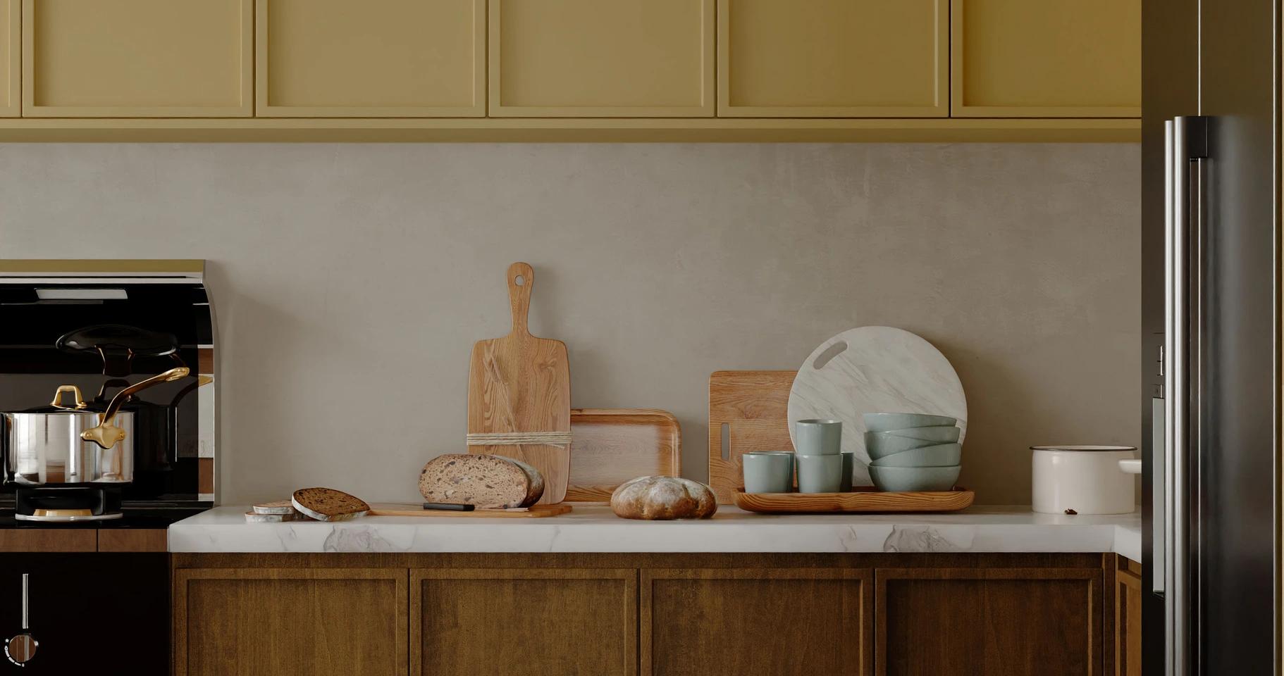 In the heart of this kitchen, the colour camel meets grounding wood-inspired surfaces from Lamitak to create a mindful sanctuary where the simple rhythms of life unfold