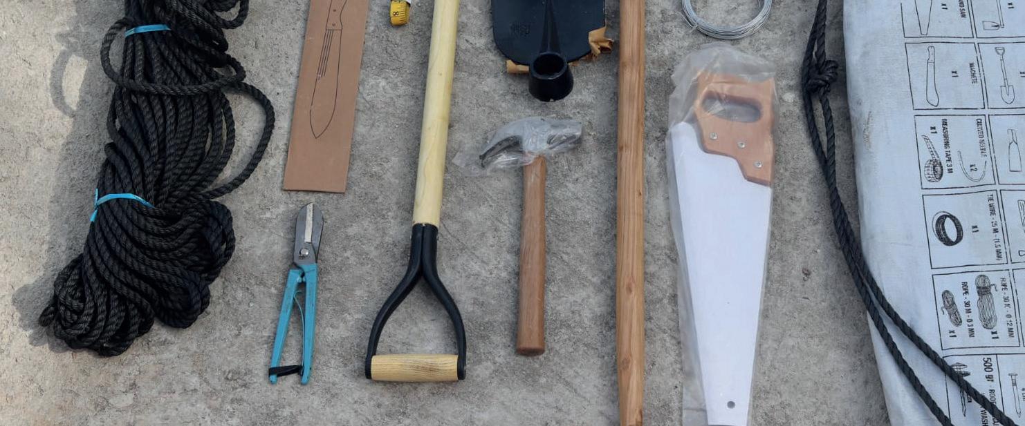 Pelle : Pioche : Houe : Marteau: