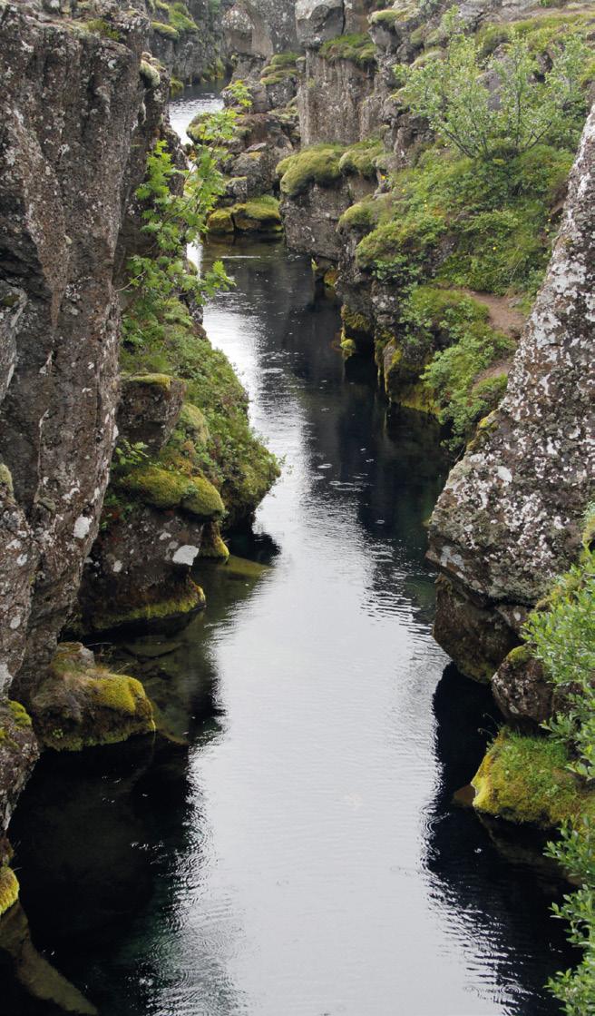Lange und tiefe Spalten kennzeichnen die Verwerfungslinien auf Island. Die Erde reißt buchstäblich auf, wenn sich die tektonischen Platten auseinanderbewegen.
