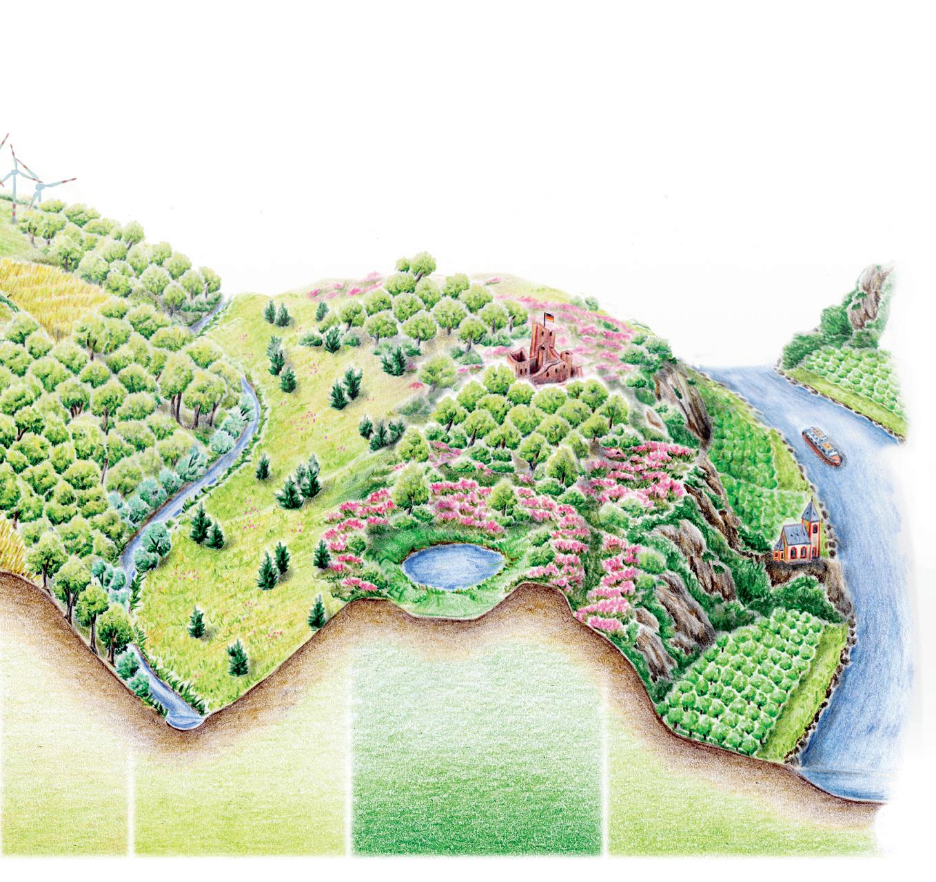 Een licht glooiend heuvelachtig gebied met kalkgraslanden vol vlinders en orchideeën, ruisende beekjes waarlangs waterspreeuw, zwarte ooievaar en vuursalamander leven: dát is de Eifel, het summum van de natuur van een middelgebergte. Hier cirkelt de rode wouw boven de graanakkers, terwijl in de stille bossen de wilde kat zijn prooi besluipt (door de lokale bewoners liefkozend ‘Eifeltiger’ genoemd).