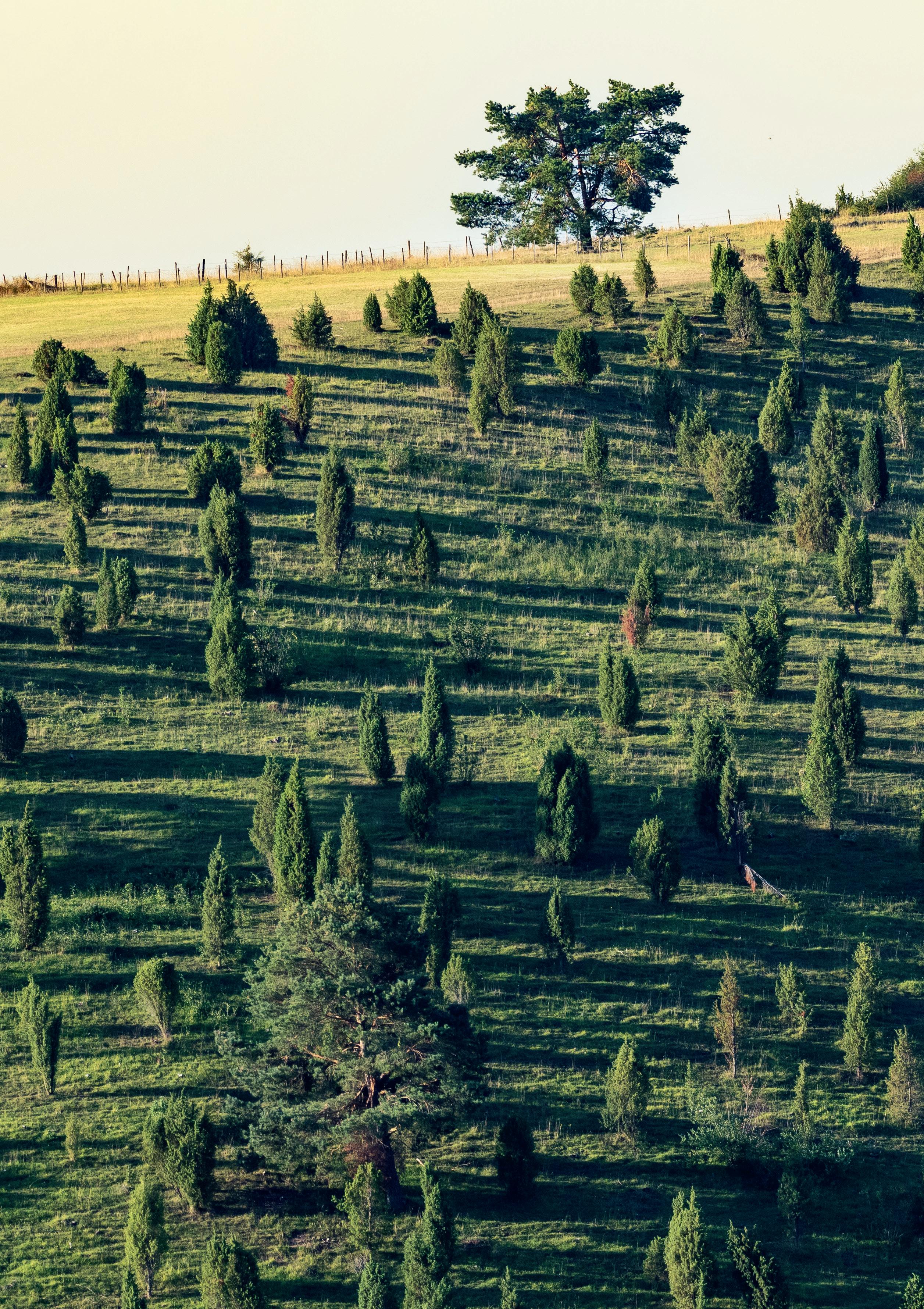 Kalkgraslanden met jeneverbes zijn typisch voor de Kalkeifel. Tussen de jeneverbesstruiken groeien orchideeën en andere bijzondere planten.