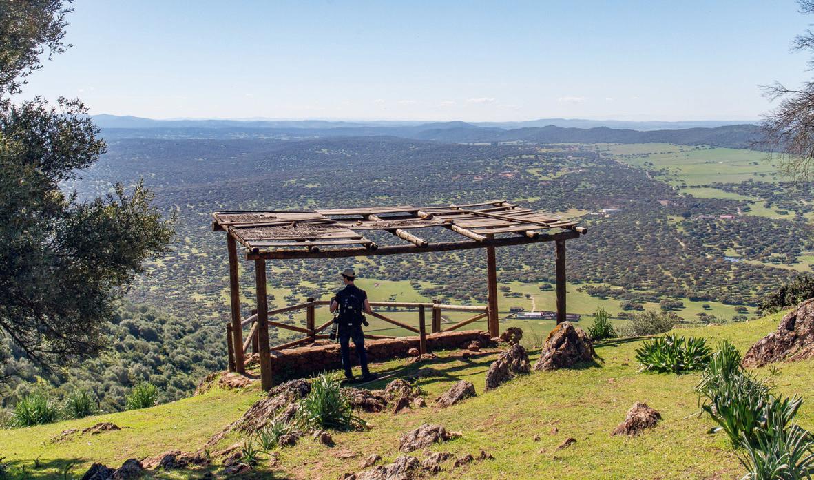 Roughly half of Extremadura’s surface is covered by dehesas. From the many low mountain ranges, you have excellent views over these vast Mediterranean savannahs (route 20).