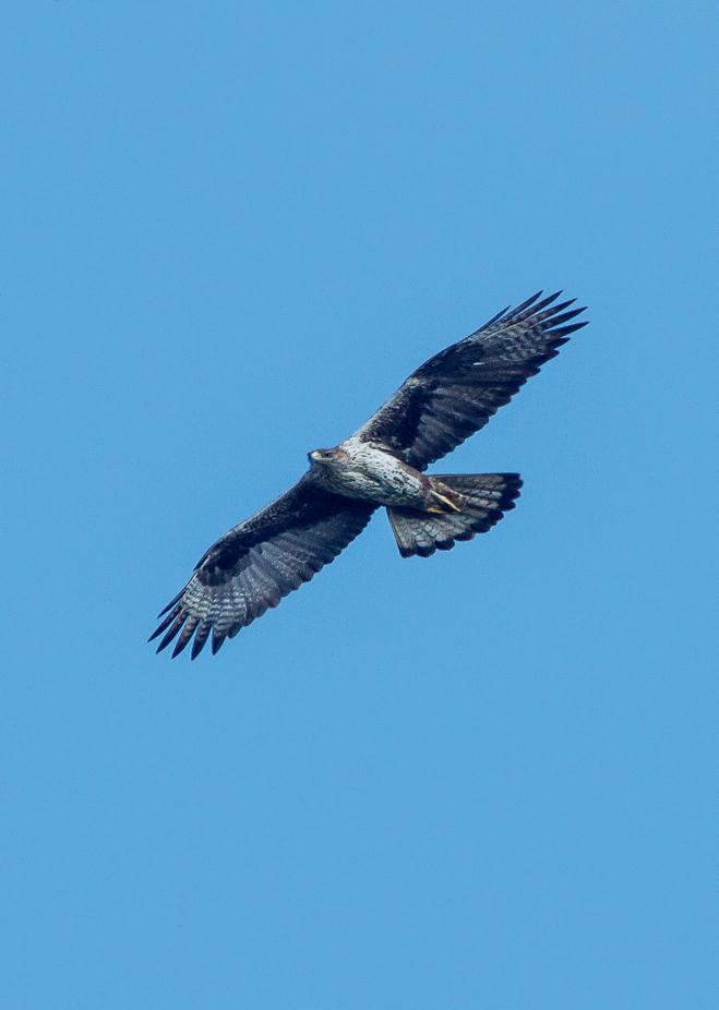 Other birds of prey The Osprey is frequent on migration but rare in winter, mostly on rivers and shallow reservoirs (4, site 11 on page 201 and sites 15, 17 and 18 on pages 238-240). Montagu’s Harrier has declined alarmingly and is now rare in the steppes of Cáceres (5, 6, 7), Brozas (site 5 on page 198). Only in La Serena it is still a common hunter of the arid fields (22, sites 20 and 22 on pages 241-243). Hen Harrier takes its place in winter. Marsh Harrier numbers are increasing. It is now frequent on wetlands (4, 5, 23, site 15, 16 and 18 on pages 238-240). It is increasingly common in arid fields too. Red Kite is common and widespread in winter, but scarce in spring and summer (most in the northern mountains; 12, 14, site 12 on page 202). Black Kite is the most numerous bird of prey from March onwards. Black-winged Kite prefers cereal fields in open dehesas and not too dry agricultural land. It is not an easy bird to track down and seems to be a bit more numerous in winter. Good routes are 4, 5, 18, 23 and sites 16, 17 and 22 on pages 239-243. Common Buzzard is widespread and rather common throughout. Sparrowhawk is fairly common in mountain forests. Goshawk and Honey Buzzard are raptors of the mountains, mostly in La Vera (14, 15, 16, site 12 on page 202) and to a lesser degree in Las Villuercas (9).