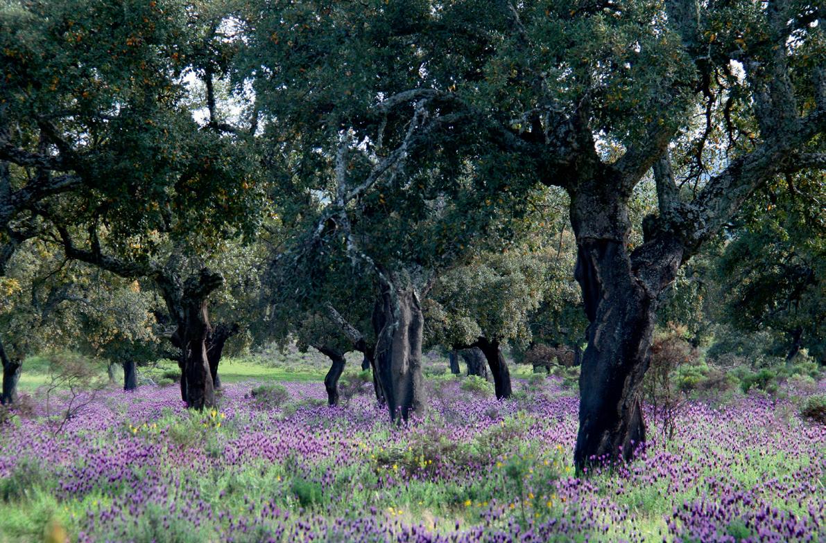 or woodlands, but that is not quite right. There are only few dehesas that are so densely covered with trees that they really resemble a forest. In scientific circles they are referred to as Mediterranean savannah, which comes closer. However, this is still not quite satisfactory, because the vast majority of dehesas are not as spacious and open as the only savannah that is most familiar to us all, the African savannah. Most dehesas are also rather more lush and colourful, and have a more secluded feel.