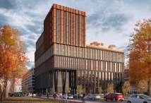 The thirteen-floor, 15 000 m2 office building is designed for a new generation with new expectations and demands, in a so cial and safe everyday environment. Generous bicycle parking facilities encourage bike commuting. The roof garden serves as a meeting point for everyone who works in the building with its outdoor bar and sauna. The office building is a flexible space that accommodates both large and small businesses, with easy to adapt and divide floor plans, a shared conference center and co-working spaces on the ground floor.