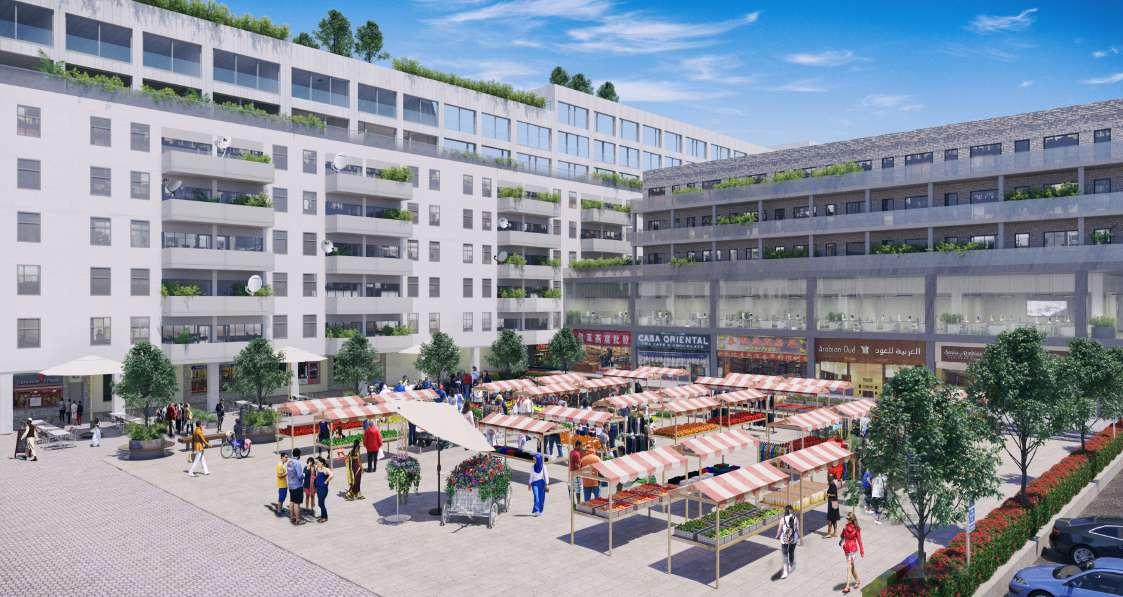 The redevelopment centers around a large and diverse supply of housing, with 600 apartments varying in type, size and con tract, which makes it possible to climb the residential ladder within the neighbourhood. In addition to the densified hous ing, public services are centralized to recover the center’s sig nificance as community center. The center is developed to be inclusive for all ages, gender ethnicities offering more work opportunities and activities programmed around the clock and around the block. Cultural diversity as an economical driver and a shared identity.