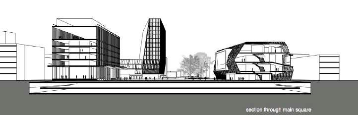 Social roof gardens reinforce a sense of community and secu rity. Backstreets become front streets with entrances to shops and housing on all sides. The center focuses on pedestrians and cyclists, better accessibility and direct connections with public transportation. An underground car parking garage allows the car park to be converted into a flexible public square, to host markets or other events.