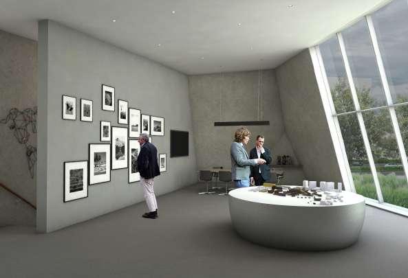 In the new centre to be built in the residential district of Stad shagen, the “Cultuurhuis” cultural centre is situated at a prom inent and highly visible location at an intersection of differing landscape structures: jutting out into the reed area and at the edge of the Stadspark. Alongside the Cultuurhuis runs a route for slow traffic that connects the centre with the district on the other side of the water with a bridge.