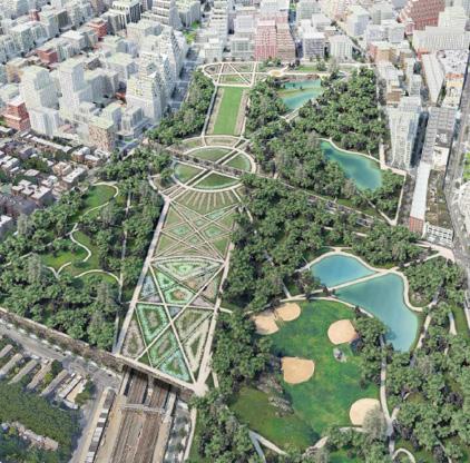 A rooftop park not only bridges the railway barrier in the most public and effective way, it is engineered to mitigate the neg ative effects of the railway traffic. Adjacent lots are upgraded and now available for development. They benefit from maxi mum proximity to the city’s center of mobility and inject the finance to realize a high-quality central station and uplift the wider area.