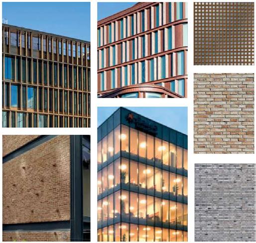 The façade palette consists of robust materials that provide variety and form a complement to the existing buildings. The ground floor is given a clearly marked plinth in darker brick, making for a clear contrast with lighter brick of the upper floors. to ground level. With a large proportion of glazing, it is import ant that windows and sections are of good quality and well de signed with details in warm metallic accents.