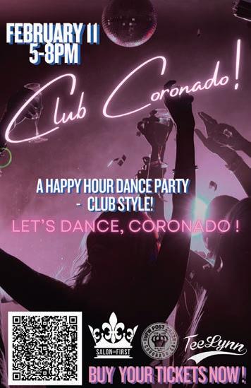 A club-style dance party with music by DJ TEE LYNN for adults who like to have fun without staying up too late! Learn more on page 49. Search 'Coronado Club' on eventbright.com