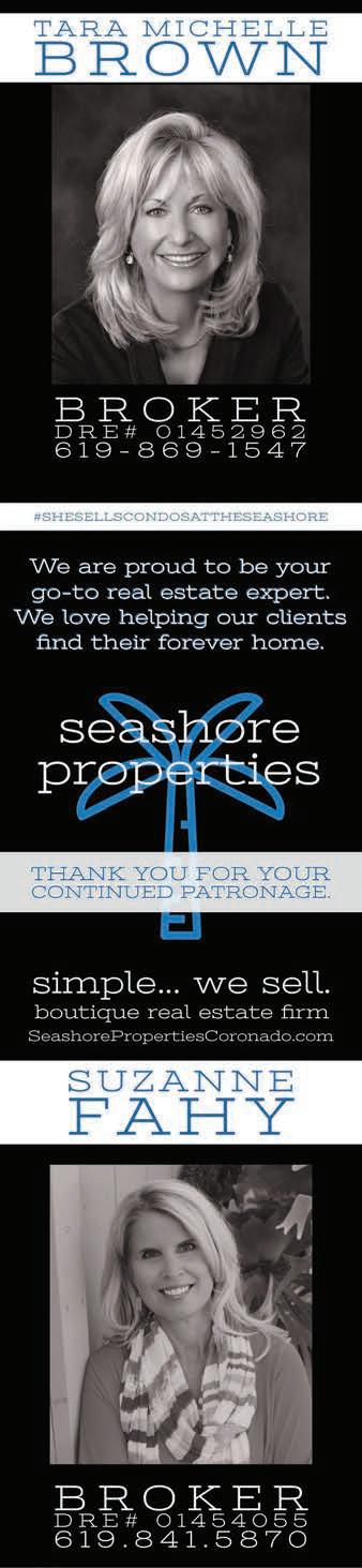 56 CROWN CITY MAGAZINE | OCTOBER 2022 Represented Seller 550 Country Club Lane Coronado 6 BD | 6.5 BA | $6.3M Represented Buyer 265 D Avenue Coronado 3 BD | 3.5 BA | $2.4M Represented Seller 371 D Avenue Unit A Coronado 2 BD | 3 BA | $1.2M Represented Seller 3634 31st Street San Diego 2 BD | 2 BA | $1.4M SOLD SOLD SOLD SOLD Your Trusted Coronado and San Diego Realtor® Compass is a real estate broker licensed by the State of California and abides by Equal Housing Opportunity laws. License Number 01527365. All material presented herein is intended for informational purposes only and is compiled from sources deemed reliable but has not been verified. Changes in price, condition, sale or withdrawal may be made without notice. No statement is made as to accuracy of any description. All measurements and square footage are approximate. REALTOR® | Broker Associate 619.865.0650 gina.schnell@compass.com DRE 01945038 | NRDS ID 196559248 Gina Schnell $21M in YTD Sales