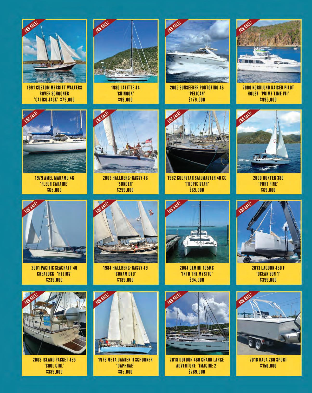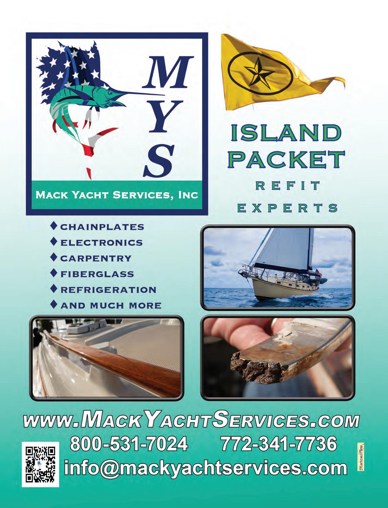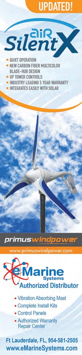 Mac’s | 28 Celestaire | 69 Charging Pros | 149 Conch Charters | 156 Coppercoat | 107 Cruise RO Watermakers | 171 CS Johnson | 109 Custom Marine Products | 113 Dragonfly Energy | 49 e-Marine Systems - Air SilentX | 30 e-Marine Systems - Xantrex | 109 Eastern Yacht Sales | 162 El Cid Marinas | 28 Festiva Sailing Vacations | 157 Flexboat International | IBC Forespar Products Corportation | 99 Forget About It | 172 Foss Foam & Rudders | 173 Froli Sleep Systems | 147 Gig Harbor Boat Works | 172 Great Lakes ScuttleButt | 167 Greatland Laser | 149 Hamilton Ferris Co. | 20 Hart Sytems | 173