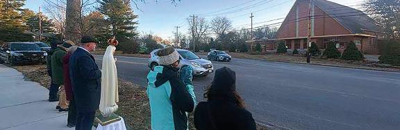 Faithful Catholics in Dedham, Massachusetts, gathered across from Saint Susanna’s Church to make reparation against blasphemous signs that were placed in a nativity scene outside the church.