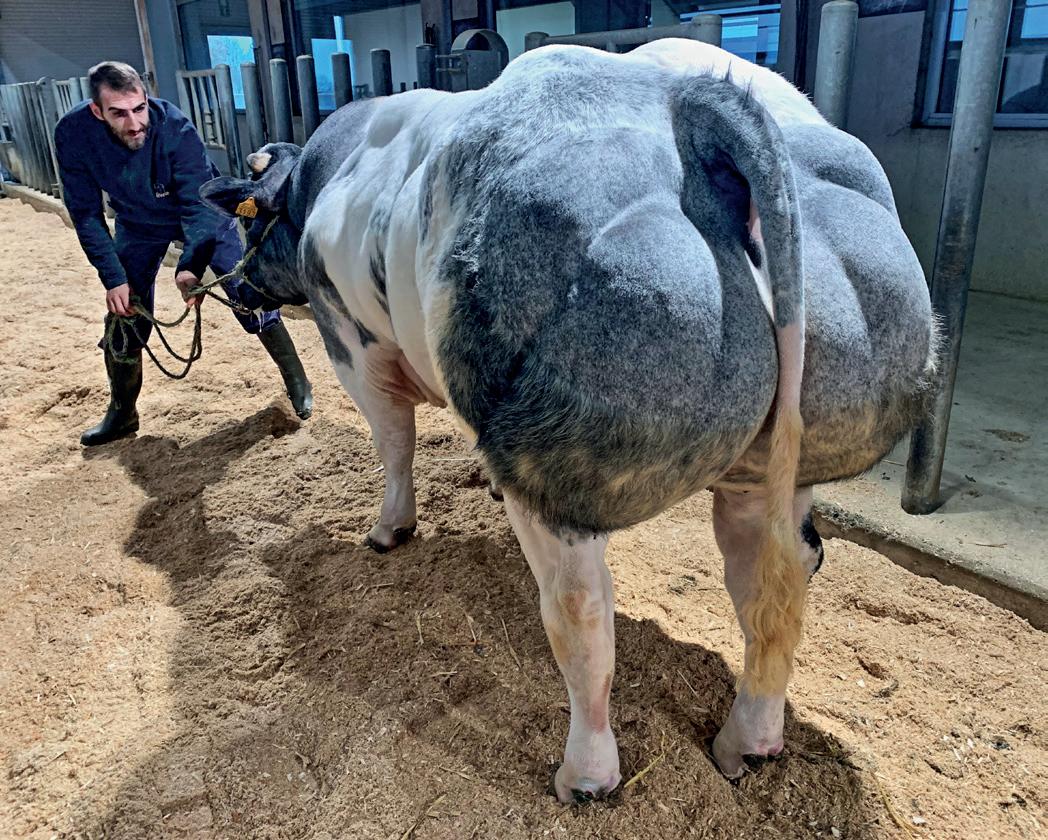 aantal van de eigen topdieren gespoeld, maar vader en zoon schromen ook niet om regelmatig dieren aan te kopen in Vlaanderen of Wallonië. ‘België is toch de bakermat, qua afstamming en vleestype lopen ze altijd een paar stappen voor. We bezoeken er jaarlijks wel vier, vijf keuringen en zijn regelmatig op zoek naar dieren waarvan wij denken dat ze iets kunnen toevoegen aan onze veestapel.’