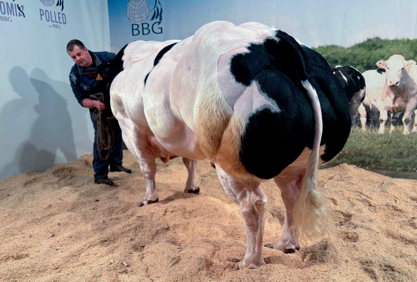 Zijn ze dan bewust op zoek naar kampioensdieren zoals Glorieuse? ‘We hadden haar al eerder gezien op een prijskamp. Ze liep niet voorop in de reeks, maar we zagen wel dat ze een goede afstamming had. Haar Kubitushalfbroer werd in 2024 kampioen in Libramont. We zagen dat Glorieuse potentie heeft om goed uit te kunnen groeien tot een echt luxe koe zonder fouten.’ Het lukte uiteindelijk om de Waalse fokker Pierre Dambly te bewegen haar te verkopen na afloop van de keuring in Libramont dit jaar. Bart senior legt uit wat hij waardeert aan Glorieuse: ‘Ze is rondom heel erg correct, fijn in beenwerk, fijn in vlees en type