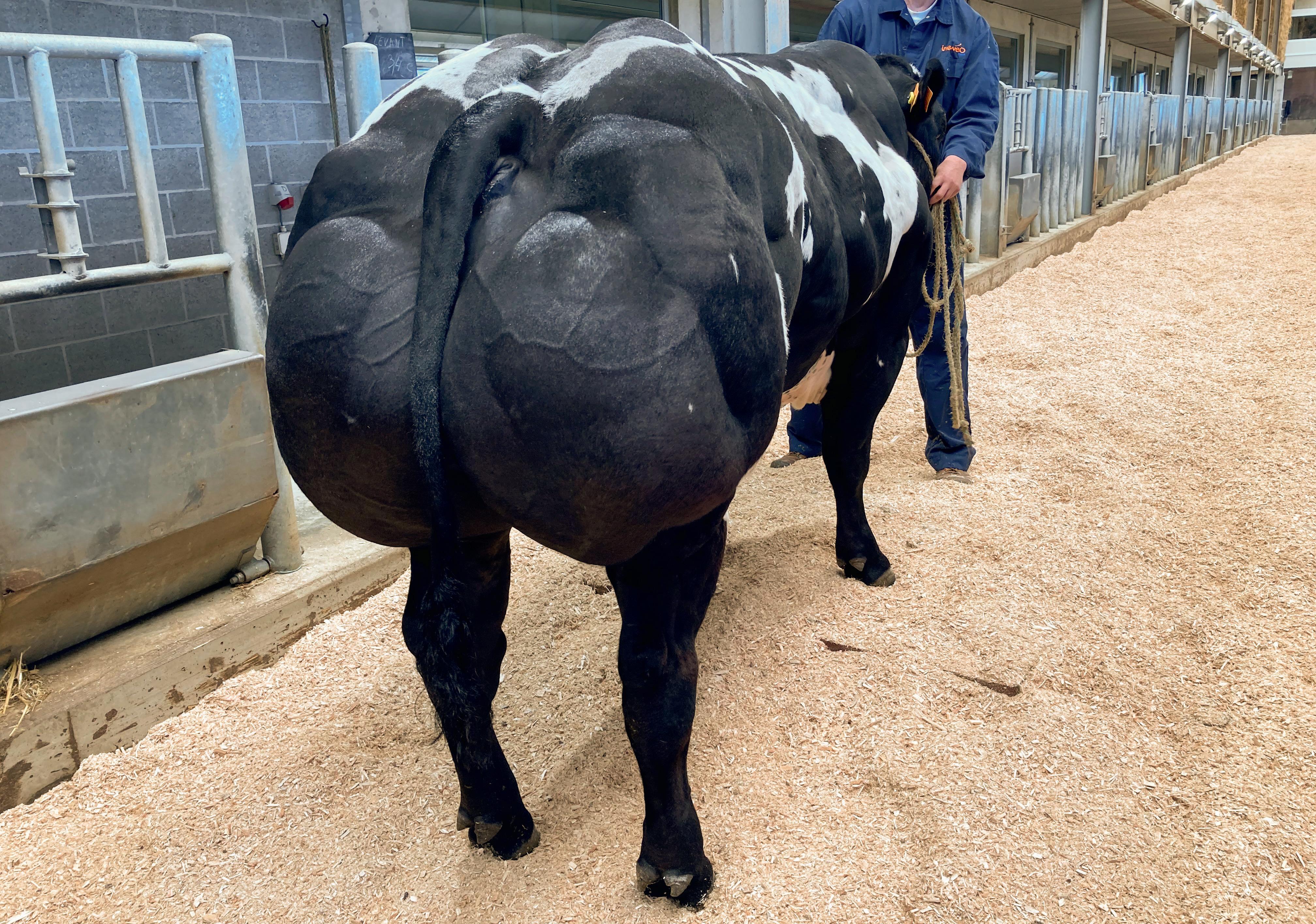 Eclaireur heeft een uitzonderlijk fenotype. Deze Futézoon met een score van 91 punten eindbeoordeling woog maar liefst 834 kg op een leeftijd van 19 maanden.