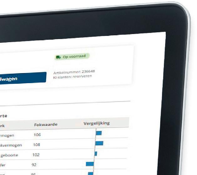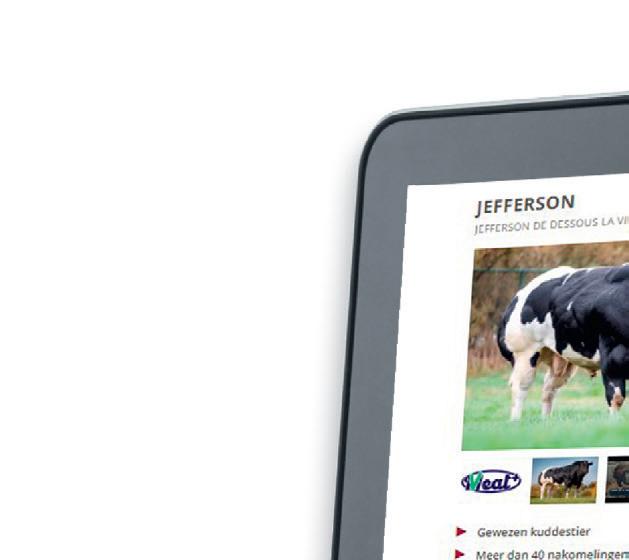 waarbij 10 fokwaardepunten staan voor 6,3 dagen. Daarbij is het wel nodig rekening te houden met het feit dat de helft van de genen van de vader komt, waarbij het werkelijk effect ook de helft is. Zo zal het e ect van de genetica van Je erson de Dessous la Ville bij zijn dochters er gemiddeld voor zorgen dat ze bijna 32 dagen eerder geïnsemineerd worden, 34,5 dagen eerder voor het eerst kalven en een 7 dagen korter interval hebben tussen de eerste en tweede kalving. In tabel 1 is een overzicht gepubliceerd van de top 25 op basis van de fokwaarde leeftijd eerste kalving. Hun nakomelingen zullen dus gemiddeld gezien het vroegst kalven. In de augustuseditie van VeeteeltVlees leest u meer over deze fokwaarden en de eerste publicatie van vruchtbaarheidsfokwaarden.