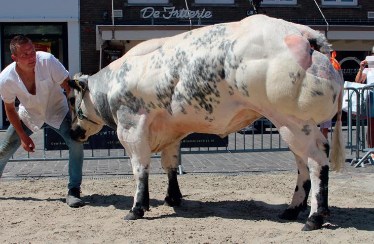 Versprille-Harms. Door haar vlottere stap werd Tiffany kampioen. Bij de stierkalveren ging spierbundel Darko (v. Darko de Centfontaine) van Leroy Herder uit Ossendrecht met de titel lopen.