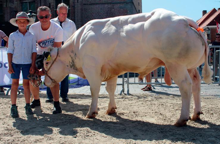 gewicht. De spannendste strijd was er in het kampioenschap bij de koeien. Twee bekende koeien uit het keuringsmilieu streden er om de titel. Passionata van de Pannemeers (v. Darko) stond er na haar winst op Agriflanders weer mooi bij. Ze liet breedte, een mooie staartinplanting en belijning zien. Maar toch moest ze het afleggen tegen Natalia de Willecomme van Luc David. Haar betere rugbespiering gaf de doorslag, aldus de jury. Nathalia toonde daarbij ook een complete bouw met finesse in de bespiering en een gewicht van 1050 kg. Het was voor deze Attributdochter de derde titel op een rij in Tielt.