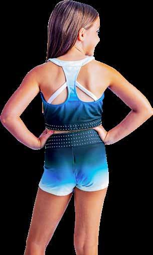 PRACTICE WEAR: High performance Lycra fabric decorated with sublimation, applique, and rhinestones.