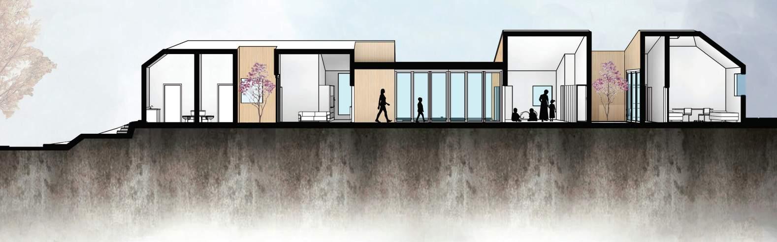 In order to accommodate the residents changing needs each of the unit types would have a “base” design that provides one or two Bedrooms while allowing the opportunity to expand in case of household growth.The loft unit type base has double height space on both the outdoor space and the living room. Each