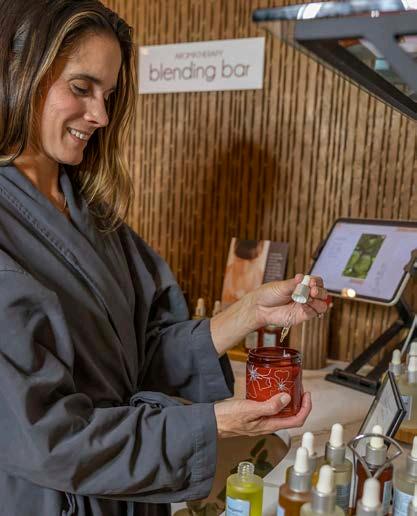 The Blend Bar at Elements Spa is an immersive, hands-on experience allowing our spa clientele to create a customized and personalized product. Whether the goal is to calm the senses or feel uplifted, guests enjoy creating aromatic and unique formulas which can also align with specific skin care goals. The Blend Bar includes a selection of both essential oils and fragrance oils that are blended together or into a base lotion.