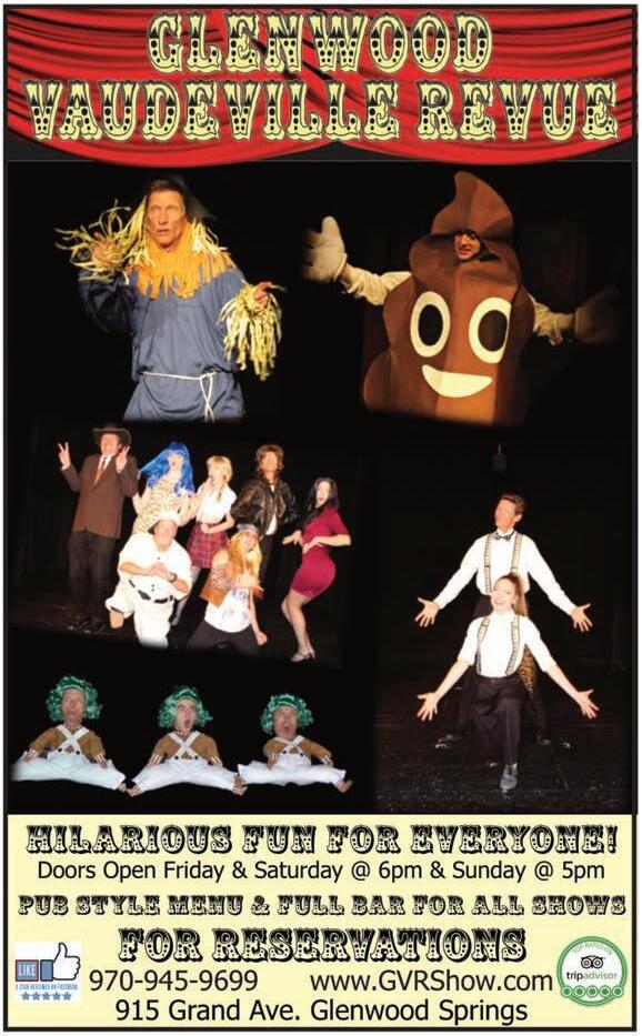 Glenwood Vaudeville Revue has comedy, magic, music and theatre productions most evenings. Dinner is optional. gvrshow.com. 970-945-9699