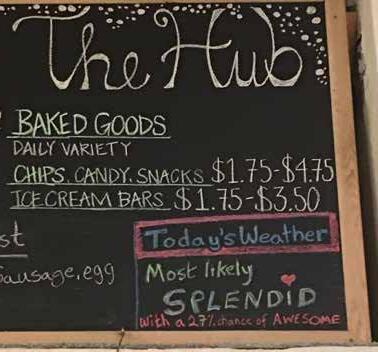 Angus is a dedicated volunteer at The Marble Hub. He is also the Hub’s self-appointed “hippy-dippy” weatherman, regularly posting his reports on the menu board. He’s offered to be the primary winter volunteer at The Hub on Saturdays, 10 am — 3 pm, beginning January 2020. YAY!